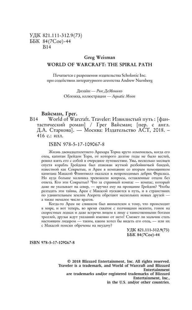 World of WarCraft. Traveler. Извилистый путьВ данный момент этот товар отсутствует в продаже. Возможно, у нас найдется аналогичный или похожий товар здесь. Жизнь двенадцатилетнего Арамара Торна круто изменилась, когда его отец, капитан Грейдон Торн, от которого долгие годы не было вестей, решил взять его с собой в очередное путешествие. Увы, несколько месяцев спустя корабль Грейдона был атакован жуткой разбойничьей бандой, известной как Сокрытые, и Арам в компании со вторым помощником капитана Макасой Флинтвилл оказался в непроходимых дебрях Фераласа. Но куда больше мальчика тревожили вопросы, оставленные отцом без ответа. Кто эти Сокрытые? Что за странный компас — компас, который даже не указывает на север, — вручил ему на прощание Грейдон? Чтобы разгадать эти тайны, Арам с Макасой пускаются в путь, и в странствиях по удивительным землям Азерота обретают нескольких новых друзей — а также немалое число врагов. |