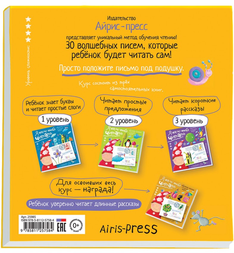 Мы прочли ухе 3 уровня, заказала 4-й. Прекрасное изобретение, действительно стимулирует ребенка самого разбирать буквы, ждать писем под подушкой, периодических подарочков от Гоши:) , мы получили много-много удовольствия! Уже спокойно читает, но писем ждет так же с нетерпением. Начали в 4.5 года, на 3 уровня ушло около 6 месяцев.