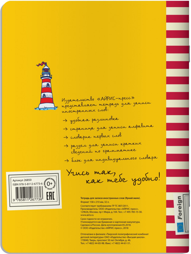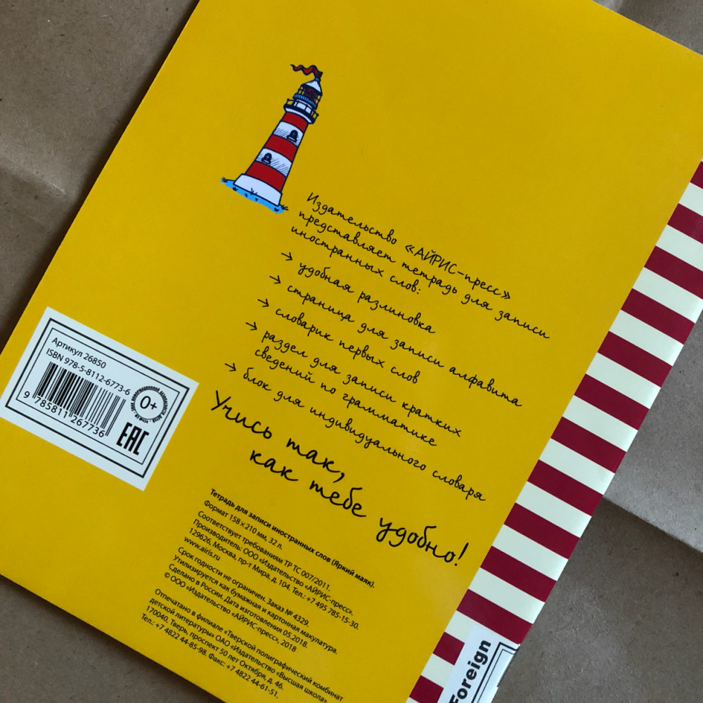 Тетрадь для записи английских слов «Яркий маяк»В данный момент этот товар отсутствует в продаже. Возможно, у нас найдется аналогичный или похожий товар здесь. Серия: Тетради для записи иностранных слов Эта тетрадь поможет быстрее учить новые иностранные слова. Никакой рутины и нудной зубрёжки, рисуйте образы слов прямо в тетради и запоминайте. Благодаря уникальной методике информация надёжно фиксируется в памяти. |