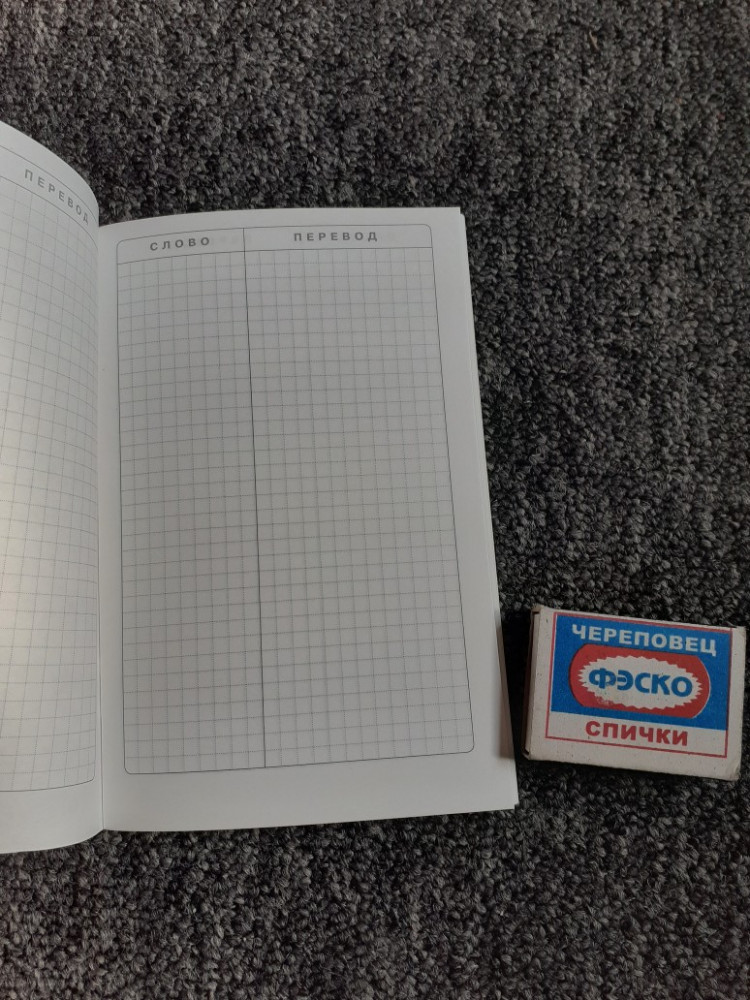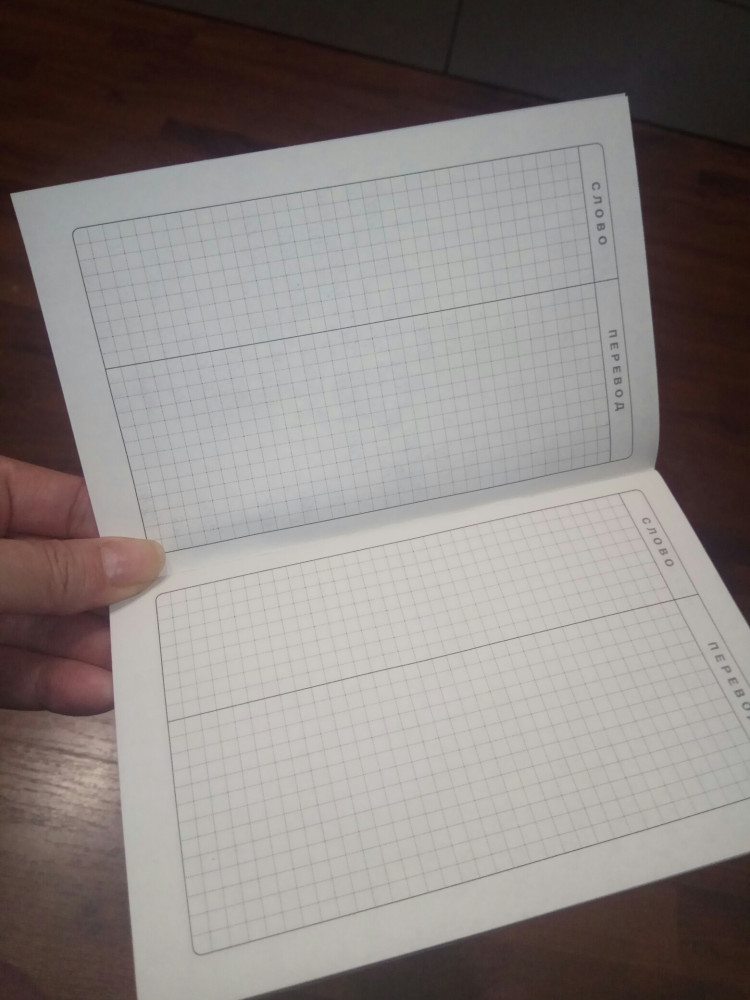 Маленькая тетрадка, разделенная на два столбца - слова и перевод. Показалась слишком тонкой.