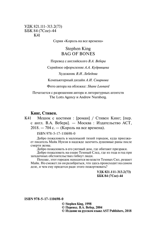 Мешок с костями+106 мастерский стиль скучный сюжет слабая развязка смешение жанров