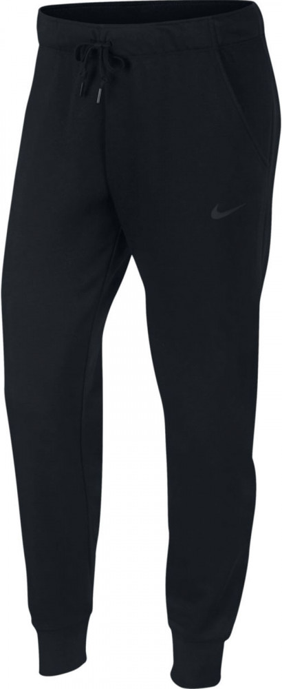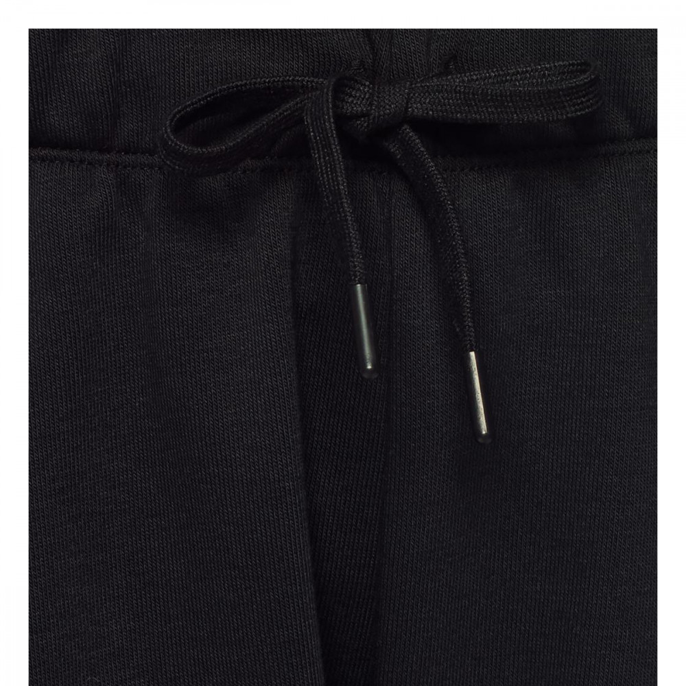 Удобные, спортивные брюки темного цвета для занятий спортом и тренировок, взрослая модель создана для максимального комфорта и сохранения тепла во время тренировок в прохладную погоду. Модель украшена логотипом производителя, который расположен на левой штанине. Брюки имеют удобную, свободную посадку, внизу штанин вшиты широкие, эластичные манжеты, что препятствует проникновению внутрь холодного воздуха. На поясе расположена широкая, эластичная резинка с дополнительным, фиксирующим шнурком. Удобные, симметричные карманы вшиты в боковых швах и отлично подойдут для хранения мелких предметов.