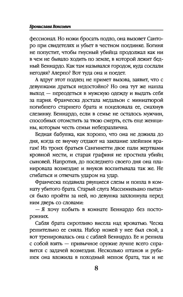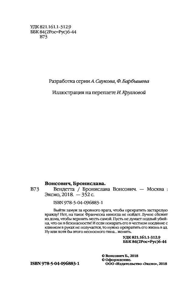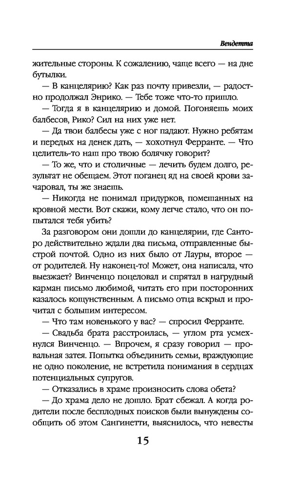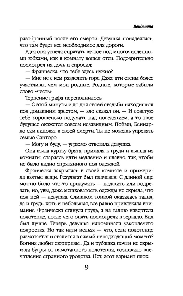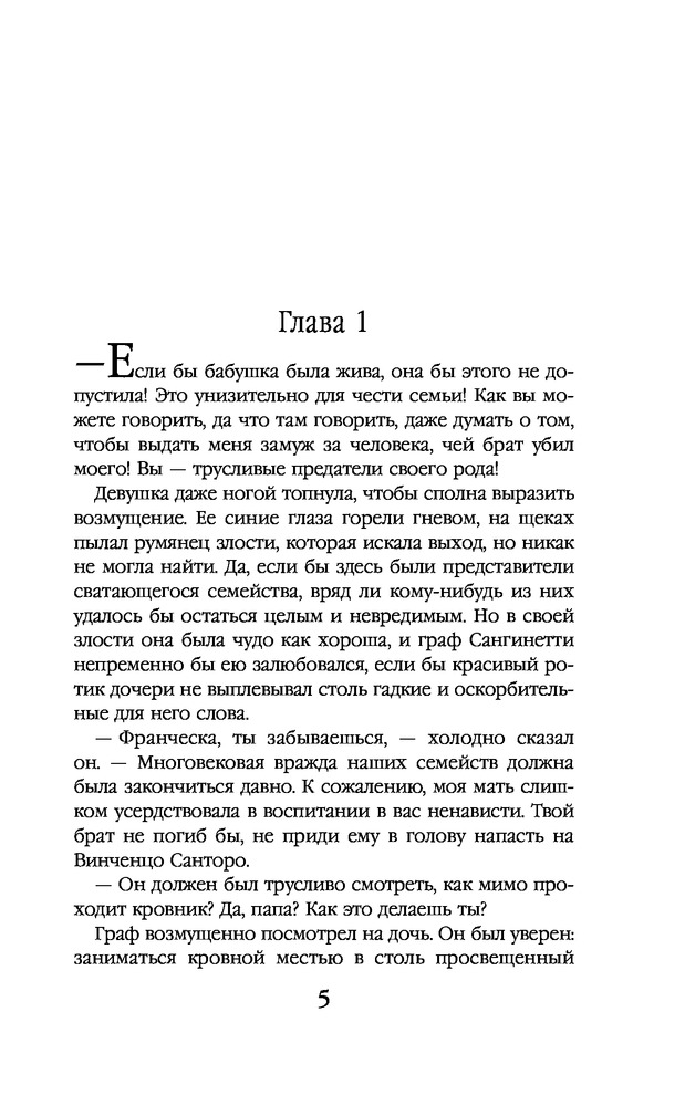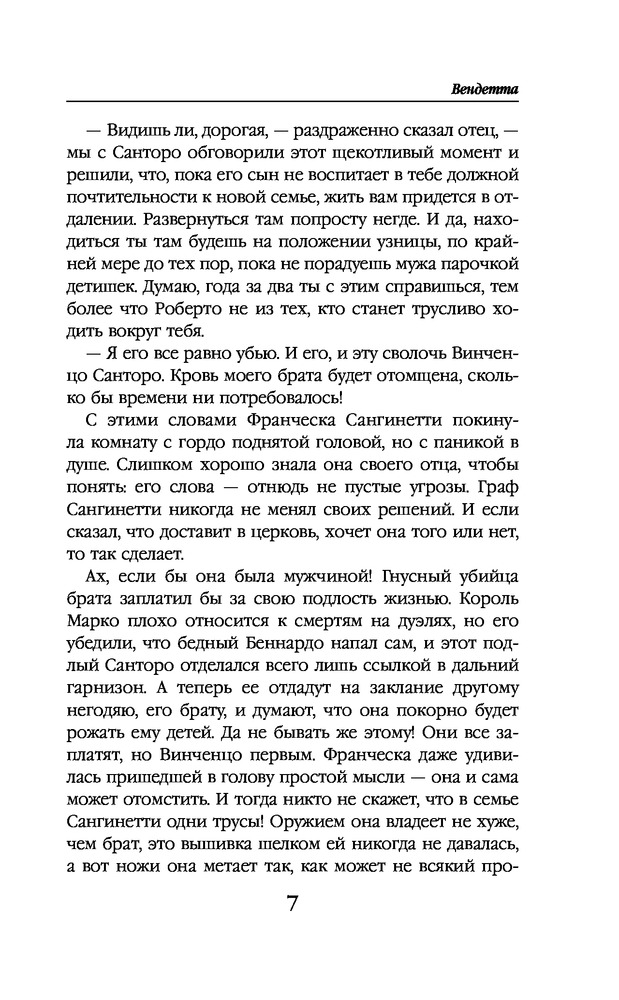 ВендеттаВ данный момент этот товар отсутствует в продаже. Возможно, у нас найдется аналогичный или похожий товар здесь. Серия: Колдовские миры Выйти замуж за кровного врага, чтобы прекратить застарелую вражду? Нет, на такое Франческа никогда не пойдет. Лучше сбежит из дома, чтобы вершить месть самой. Пусть не думает подлый убийца, что он в безопасности! И если покарать его в честном поединке с клинком в руках не получается, то нужно превратить его жизнь в ад. Ну или хотя бы этого несносного типа женить. |