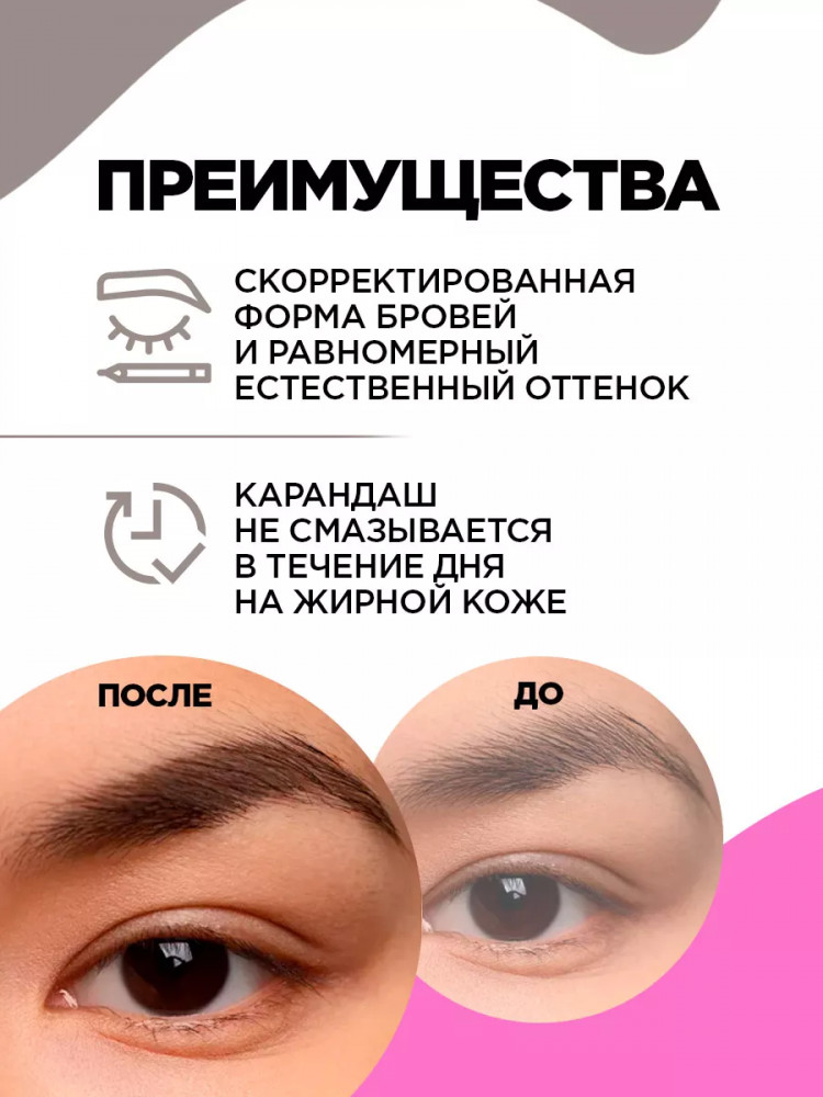 Пользуюсь этим карандашом в 4 оттенке уже больше двух лет, самый лучший. Покупала раз 5 и всегда на flip.kz Прикрепила фотографии с моих сторис чтобы было наглядно видно насколько он шикарен. Всем советую!