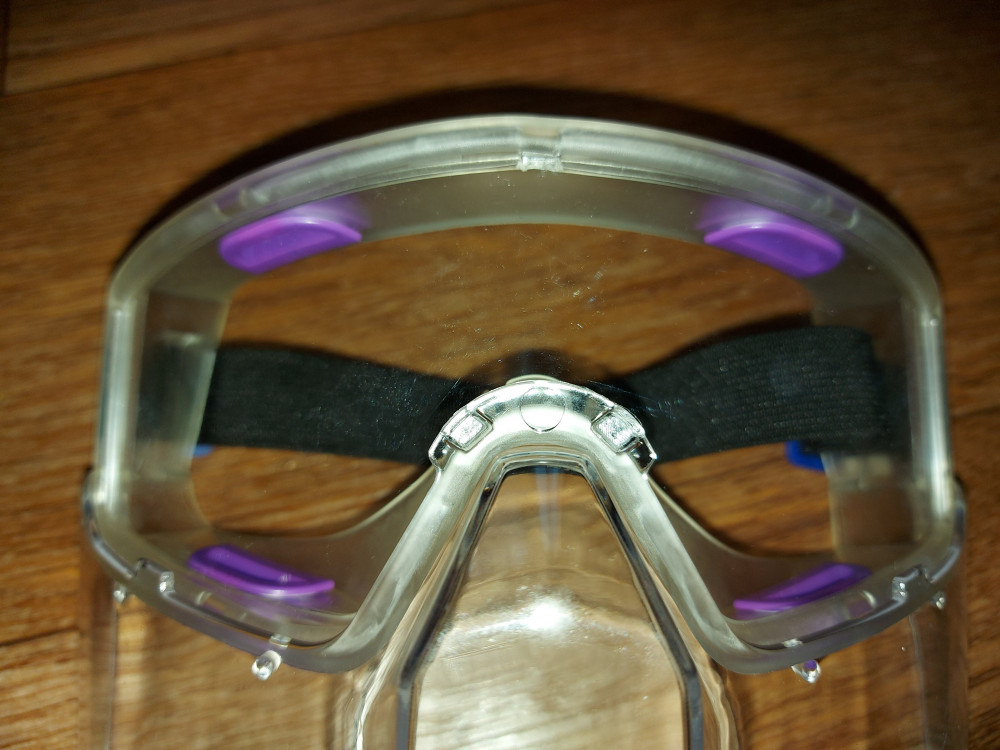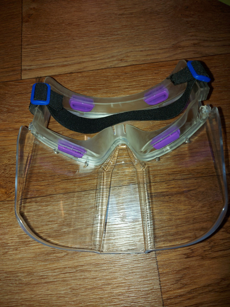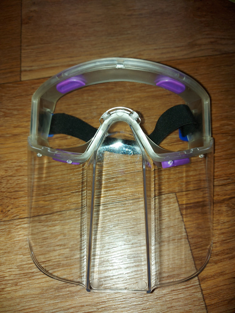 Крайне удобная конструкция которая защищает глаза и лицо. Небольшие царапки имеются.