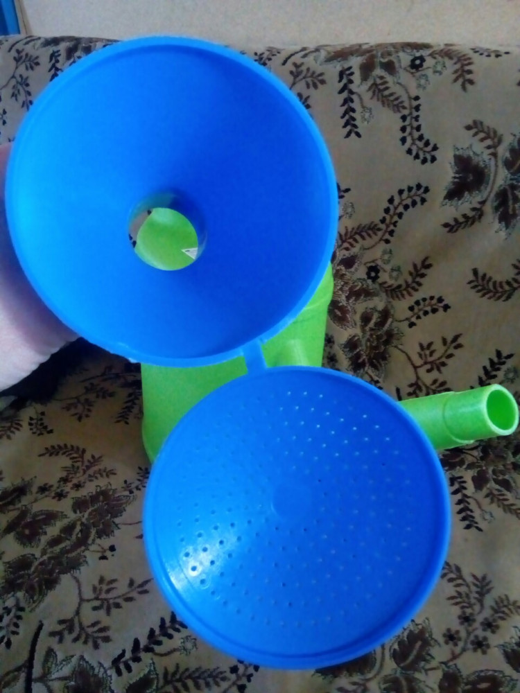 Рассекатель для разбора при рассоединении на две части скреплены между собой и при поливе через это крепление льется вода. пришлось пластилином заделать его. Ручка лейки не скругленная не очень комфортно.