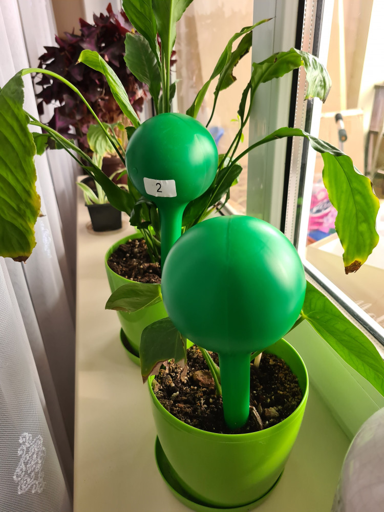 Перед отпуском максимально залила цветы в горшках, и добавила колбу с водой. За 12 дней в некоторых осталось половина, некоторые пустые, но все цветы свежие. Так что это отличный вариант для автополива цветов в долгое отсутствие. Рекомендую 👍🏻