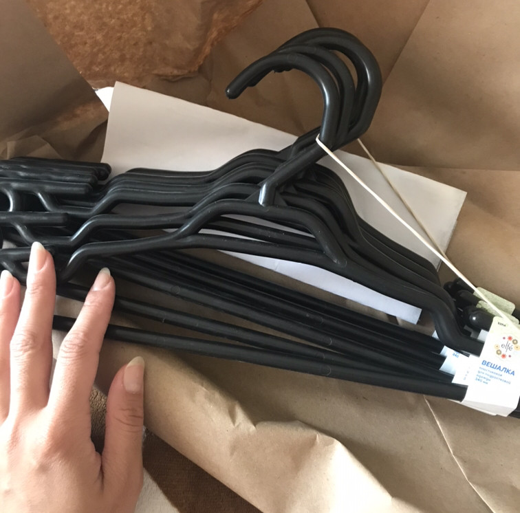 плюс: вешалки хорошие, компактные, все вместились в шкафчик; минус: от этикетки остаются липкие следы.
