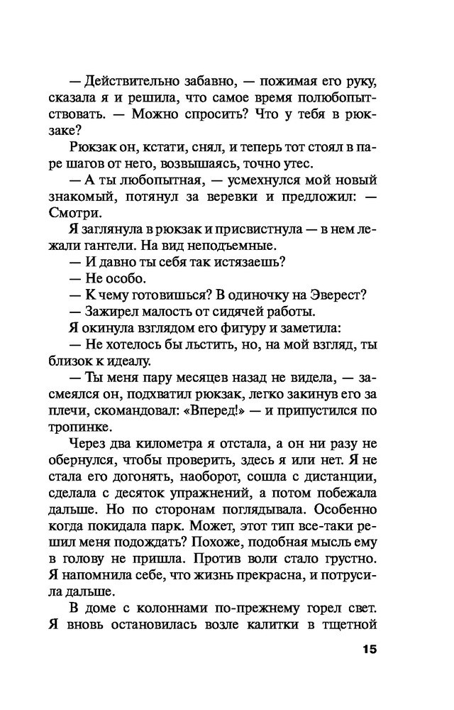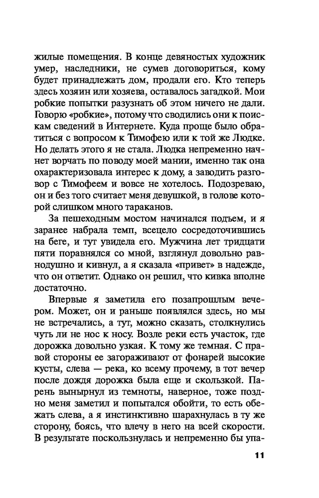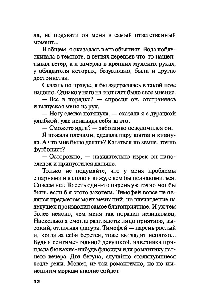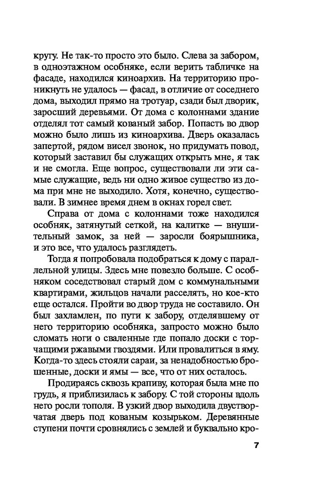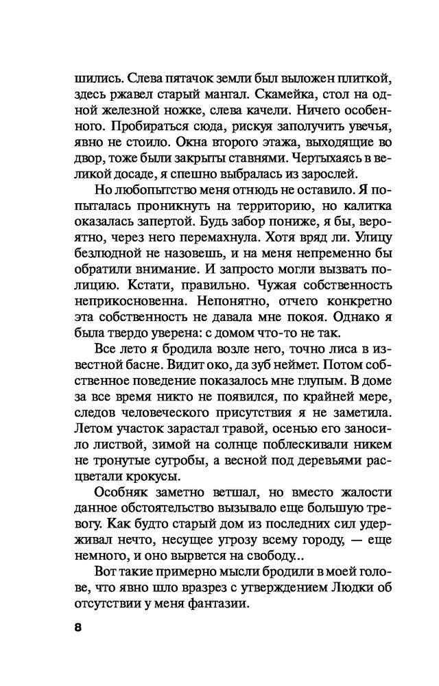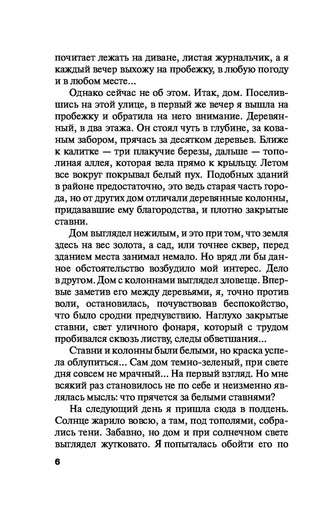 Свой, чужой, роднойВ данный момент этот товар отсутствует в продаже. Возможно, у нас найдется аналогичный или похожий товар здесь. Серия: Русский бестселлер (обложка) Таинственный и зловещий особняк с колоннами как магнитом притягивал Валентину Смирнову. Каждый вечер Тина отправлялась на пробежку в парк и останавливалась рядом с необитаемым домом, пытаясь разгадать его мрачную загадку. И тут в жизни Тины произошло сразу несколько событий: при сносе старого здания в центре города находят труп давно убитого мужчины с отрубленными руками; Тинка узнает, что Эмма — девушка, жившая в квартире до нее, бесследно исчезла; случайно обнаруживает у себя в квартире старую записку с адресом дома с колоннами; знакомится с мужчиной своей мечты — ослепительно красивым, спортивным, галантным, к тому же без материальных и других проблем. И вот что удивительно: оказывается все эти события связаны между собой! |