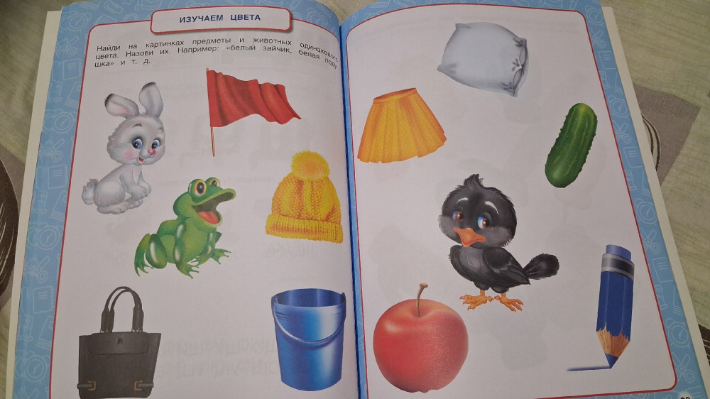хорошая книга, яркие картинки, некоторые задания простые для 2 лет, некоторые сложнее. есть азбука, разные картинки про окружающую среду. для занятий отлично, а вот картинки про животных лучше в фотокнигах.