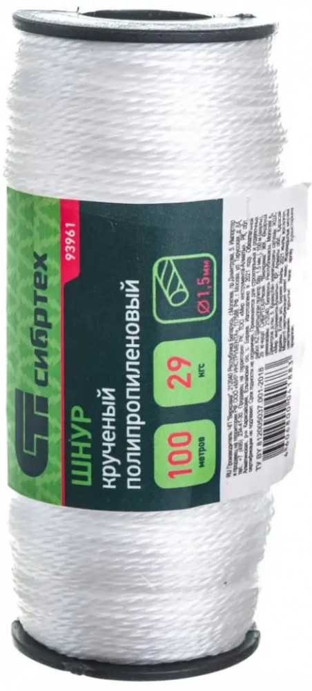 Сибртех Шнур кручёный полипропиленовый с сердечником-20%