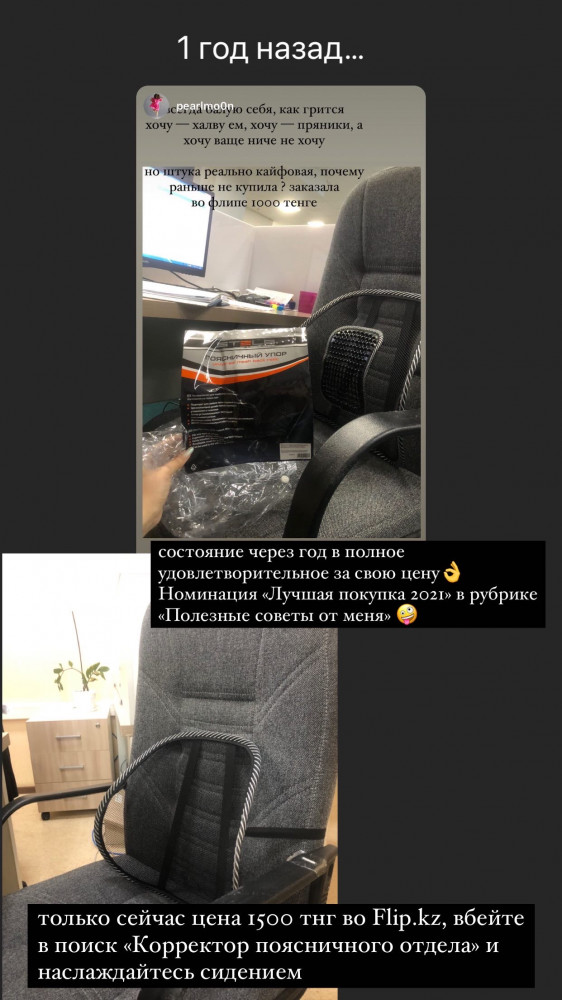 Для моей спины отлично. За такую цену если прослужит хотя бы полгода, думаю будет хорошо. Заказала второе на работу. Спасибо производителю и flip.kz . Особенная благодарность девочкам из пункта выдачи