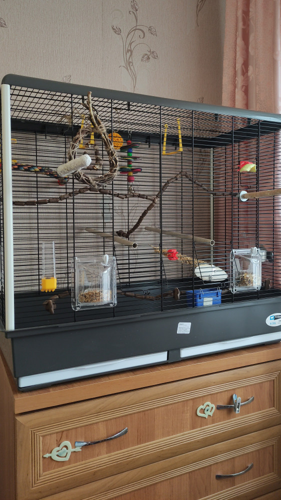 Большая и очень удобная клетка вольер! Легко собирается и легко чистить! Качество отличное! Аксессуары отличные и удобные! Долго прослужила и все целое! Волнистым попугаем очень нравилось в этой клетке, свободно летали!