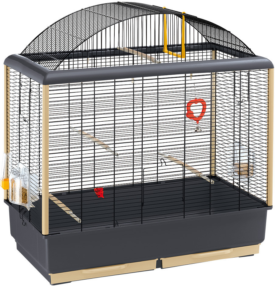 В комплекте вы найдете необходимые аксессуары: поворотные кормушки Brava, поилку, раздвижные жердочки с резиновым покрытием, удобную прищепку для овощей, забавную игрушку-зеркало с маленьким колокольчиком. Самая большая модель Palladio 5 включает также пластиковые качели для канареек.