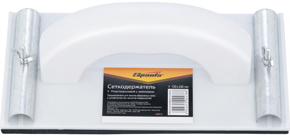 Пластмассовый сеткодержатель для шлифования имеет специальные металлические фиксаторы для зажима шлифовальной бумаги, абразивной сетки.