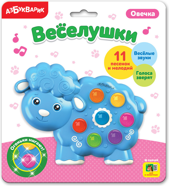 Азбукварик ОвечкаВ данный момент этот товар отсутствует в продаже. Возможно, у нас найдется аналогичный или похожий товар здесь. Серия: Веселушки Веселушки — музыкальные игрушки для самых маленьких! |