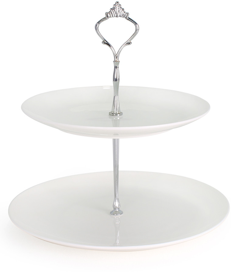 Этажерка двухъярусная будет прекрасным дополнением к набору посуды и отлично подойдет для сервировки праздничного стола. Помимо фруктов, ее также можно использовать для подачи закусок и различных сладостей: конфет, пирожных, круассанов, печенья и т.д. Изысканный дизайн позволит органично вписаться в праздничную сервировку стола.