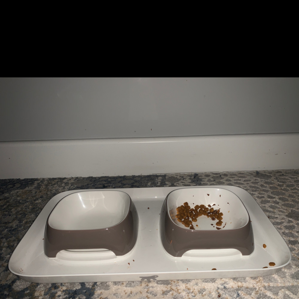 Классный качественный поднос с мисками. Теперь корм не валяется по краям.