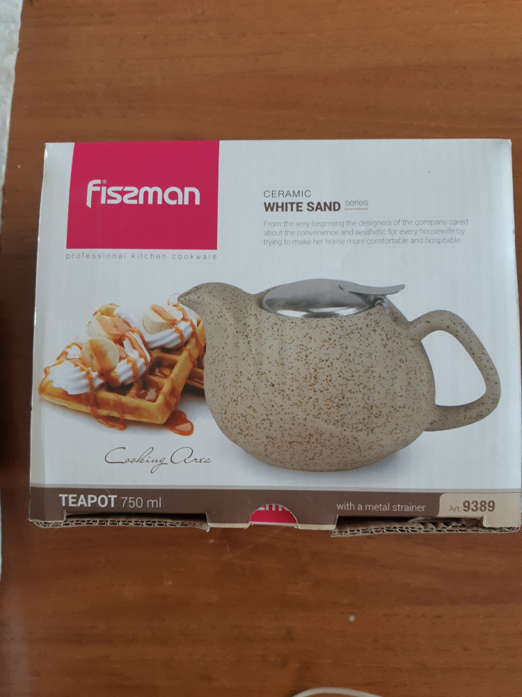 Сегодня получили чайник. Обалденный. Фирма Fissman и магазин Flip радуют, как всегда. Ситечко норм, не согласна с теми, кто пишет, что маленькое. Цвет ближе к бежевому в тон нашей столешнице. Пить чай одно удовольствие. Видела подобный в магазине, но там крышка болталась и гремела. Здесь все хорошо, хотя я бы сделала крышку из того же материала, что и чайник. Спасибо!