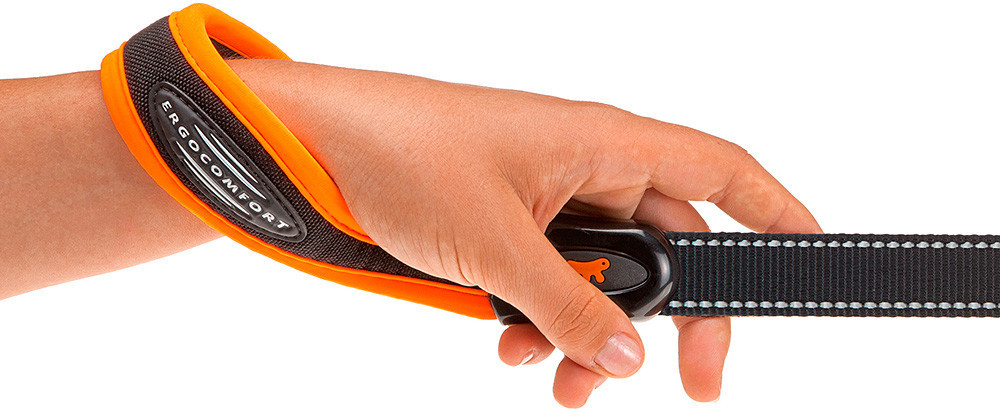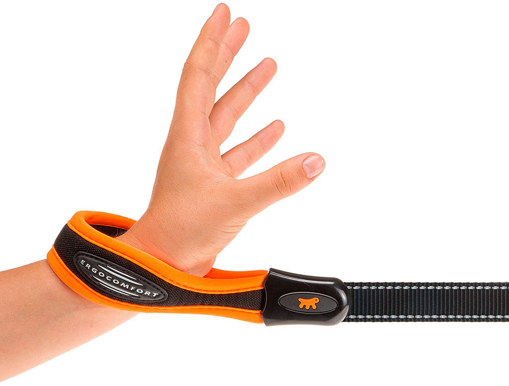 Поводки Ergocomfort Fluo выпускаются в различных модных флуоресцентных цветах и в широком диапазоне размеров, которые можно подобрать к собакам всех размеров.