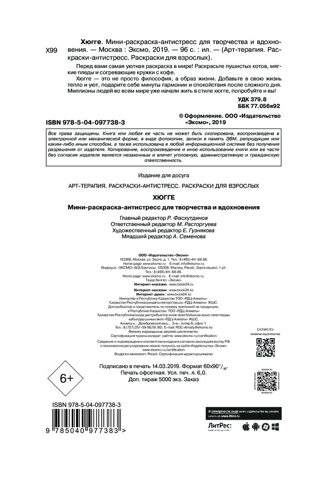 💳 Оплатить за товар можно при получении 🇰🇿 Есть бесплатная доставка по Казахстану 🎁 Копите бонусы с каждой покупки Серия: Арт-терапия. Раскраски-антистресс Перед вами самая уютная раскраска в мире! Раскрасьте пушистых котов, мягкие пледы и согревающие кружки с кофе. Хюгге — это не просто философия, а образ жизни. Добавьте в свою жизнь тепло и уют, подарите себе минуты гармонии и спокойствия после сложного дня. |