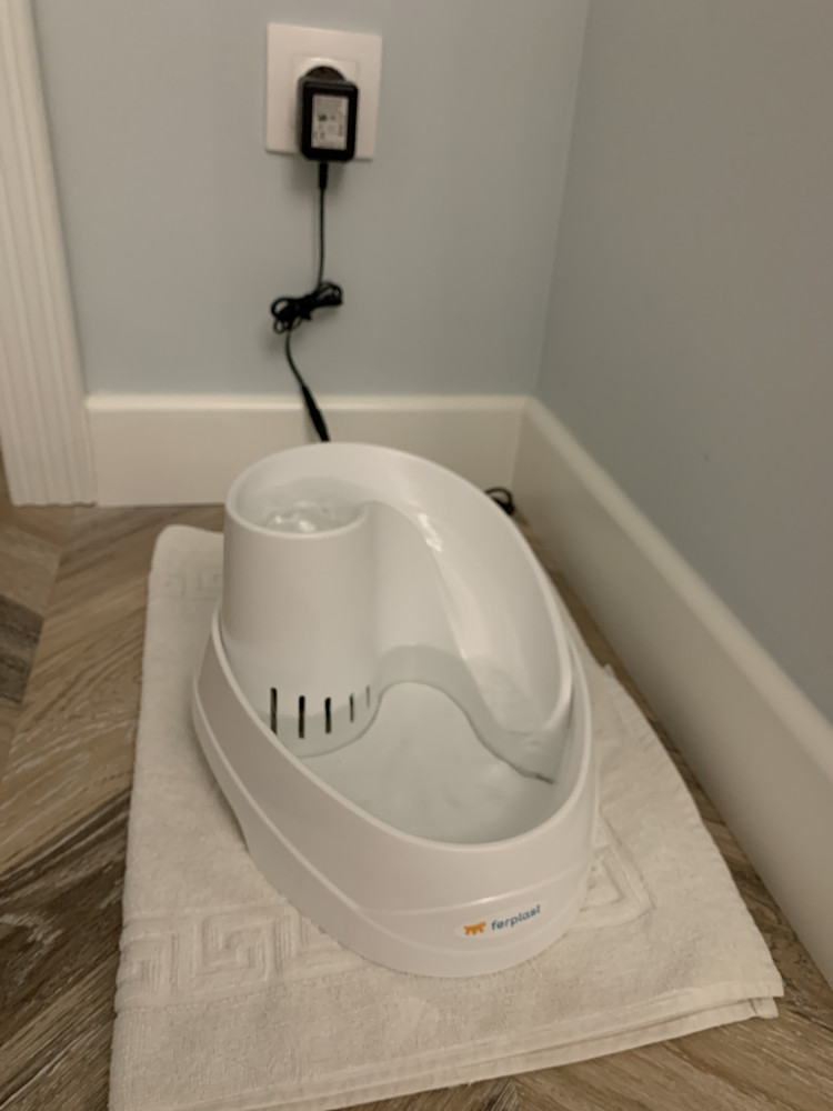 кот стал больше пить, нужная вещь для питомца, неудобно расположен шнур - приходится пропускать его при использовании через ножку изделия и через паз - мне кажется со временем там будут заломы, а там же вода. и нагревается вилка - вот это совсем нехорошо, учитывая, что прибор работает круглосуточно и в вашем отсутствии тоже.
