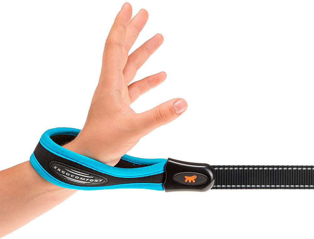 Поводки Ergocomfort Fluo выпускаются в различных модных флуоресцентных цветах и в широком диапазоне размеров, которые можно подобрать к собакам всех размеров.