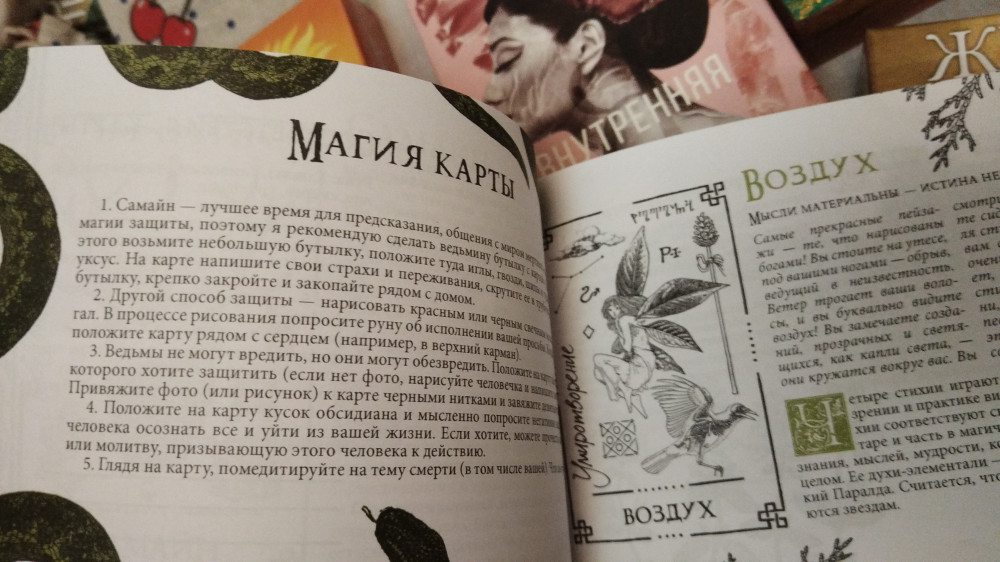 описания ритуалов к каждой карте, руководства к созданию талисманов и амулетов и работа со стихиями