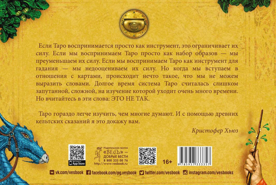Кельтское Таро (78 карт + книга с комментариями)В данный момент этот товар отсутствует в продаже. Возможно, у нас найдется аналогичный или похожий товар здесь. Серия: Такое разное Таро Стоит вам открыть первую страницу книги или распаковать коробочку с картами, как вы погрузитесь в мир кельтов — с его богами, богинями, магическими существами и мудрыми древними сказаниями. Это не просто колода карт. Это сокровищница, наполненная кельтскими преданиями (из которых вы почерпнете немало полезных советов для обычной жизни) и магических гадательных практик (которыми пользовались древние кельты). |