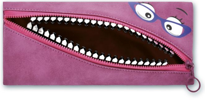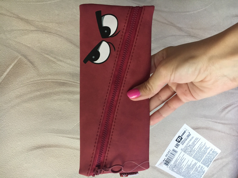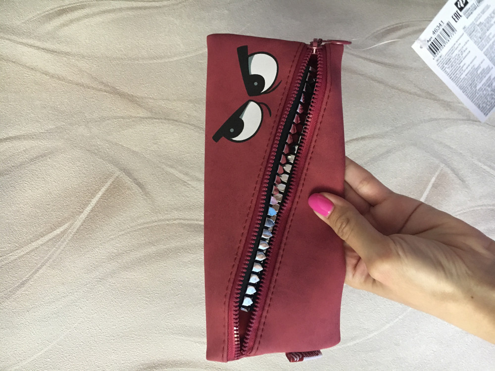 Пенал прикольный, сделан достаточно хорошо, зубы внутри серебристые, красный подклад. Но цвет у него на самом деле не красный, а больше бордовый