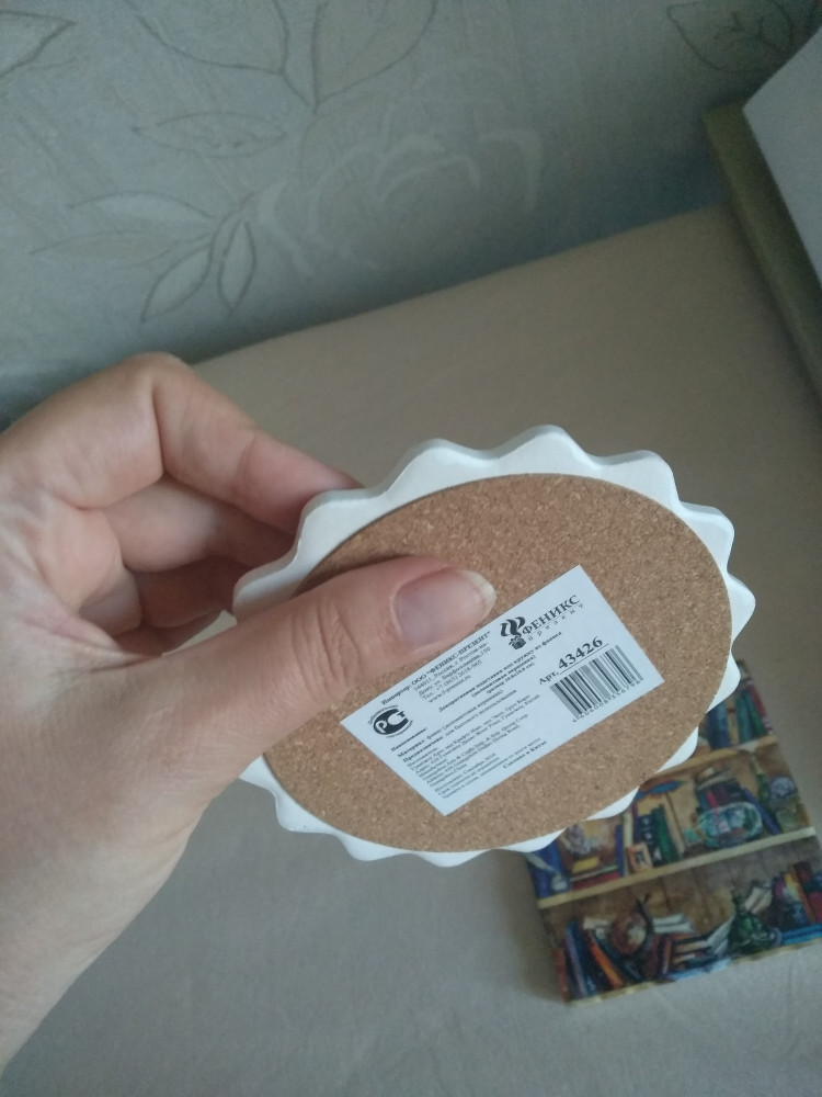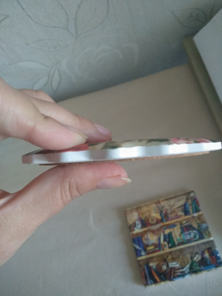 Прикрепляю фото в сравнении с предыдущей подставкой. Качество картинки гораздо хуже, но все равно милая, поверхность в отличии от старой - матовая, на дне также пробка. Оригинальный край,но он с уклоном. Все на фото.