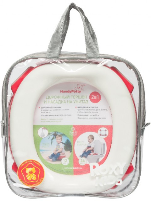Прогулки и путешествия с ребенком станут намного комфортнее с дорожным горшком «HandyPotty». Это простое приспособление сочетает в себе функции трех аксессуаров: обычного горшка, дорожного горшка и адаптера для унитаза, что позволяет использовать «HandyPotty» длительное время.