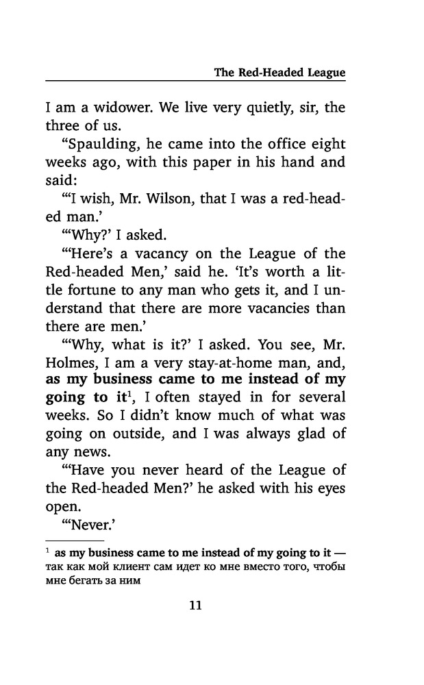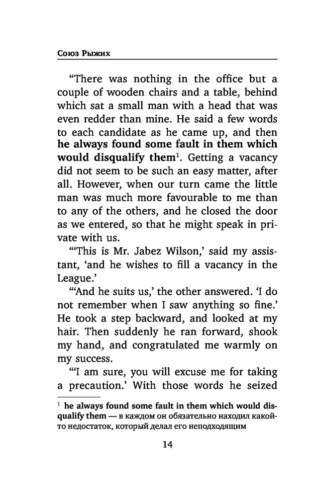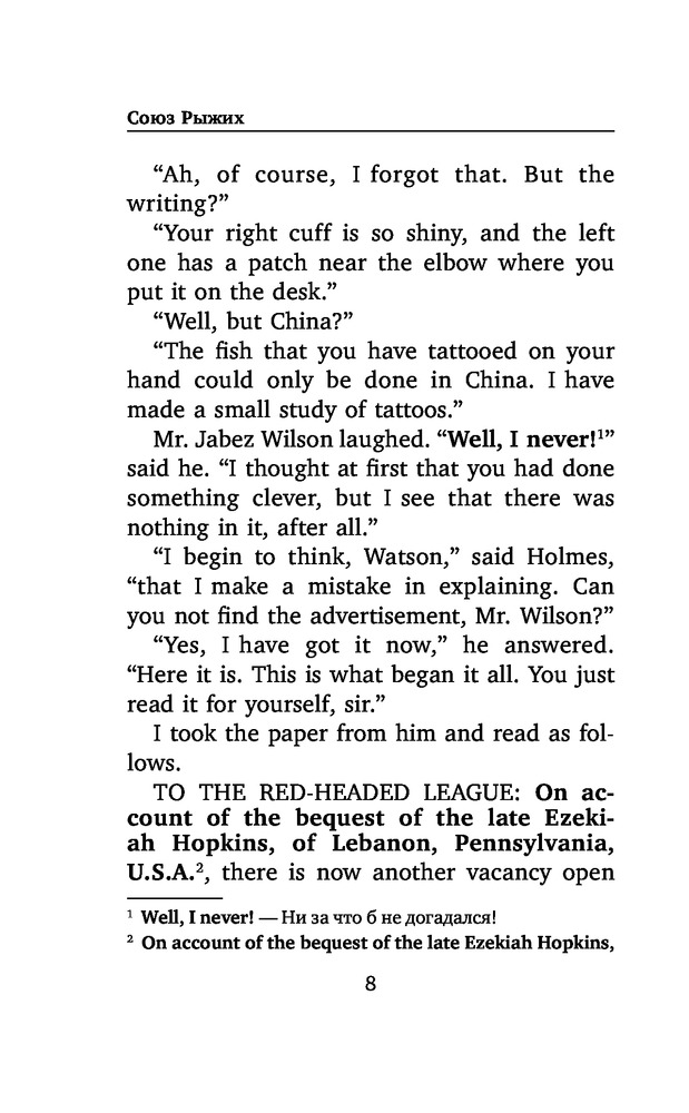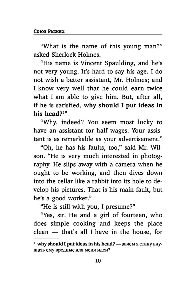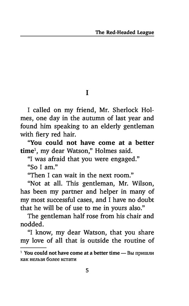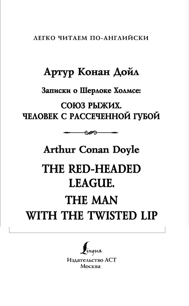 Записки о Шерлоке Холмсе: Союз рыжих, Человек с рассеченной губой. Уровень 2В данный момент этот товар отсутствует в продаже. Возможно, у нас найдется аналогичный или похожий товар здесь. Серия: Легко читаем по-английски В книгу вошли одни из самых захватывающих рассказов Артура Конан Дойла из цикла о Шерлоке Холмсе. Как замечает сам Шерлок Холмс, в его практике не было случая, который на первый взгляд казался бы таким простым и был бы в действительности таким трудным. |