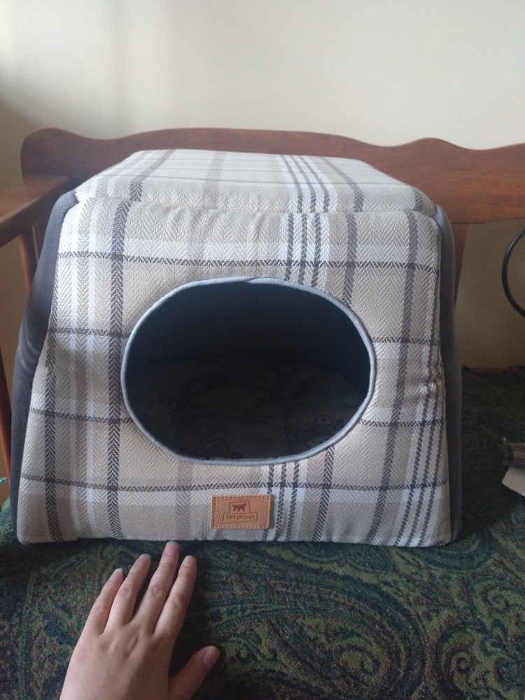 Отличный домик для кота, довольна своим выбором. Соответствие цены и ожидания 100%. Прям очень понравился внешний вид домика, цвет и качество материалов, тактильно приятные ощущения. Плотные мягкие упругие стенки, внутри тепло, подушечка мягкая толстенькая. А главное, все это можно стирать)) На загруженном фото внутри домика лежит другая подушечка, родная подушечка в стирке, после стирки вид свой она не потеряла, все отлично.