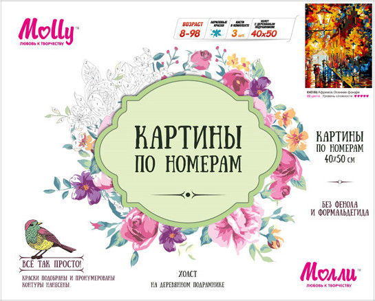 Molly Набор для раскрашивания по номерам на холсте «Л. Афремов. Осенние фонари» (40×50 см)В данный момент этот товар отсутствует в продаже. Возможно, у нас найдется аналогичный или похожий товар здесь. Серия: Картины по номерам на холсте С помощью набора для творчества можно нарисовать яркую и глубокую картину по номерам Леонида Афремова. На картине запечатлена осенняя набережная, по которой прогуливаются прохожие. Идет дождь, на мокром асфальте отражается улица. |