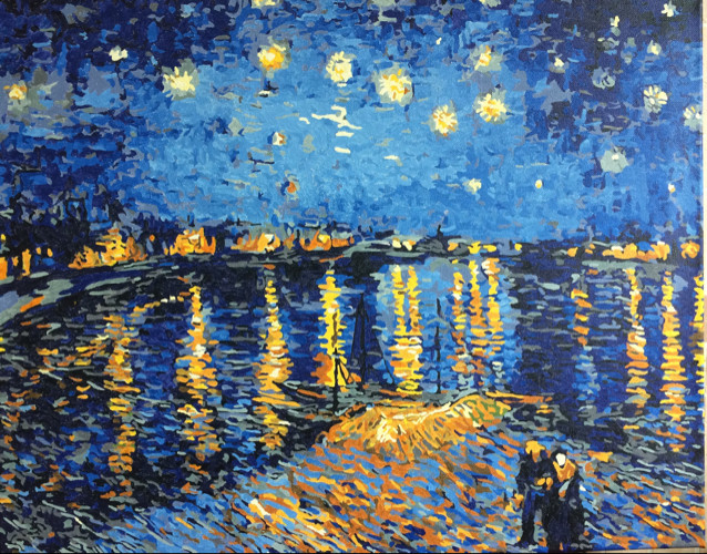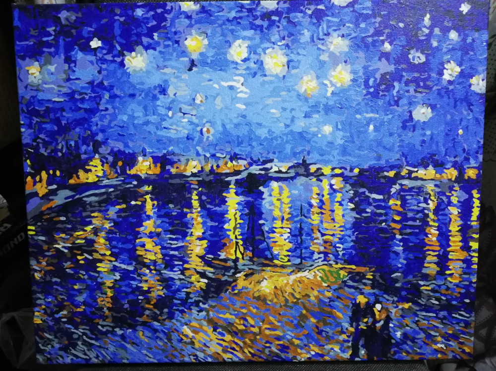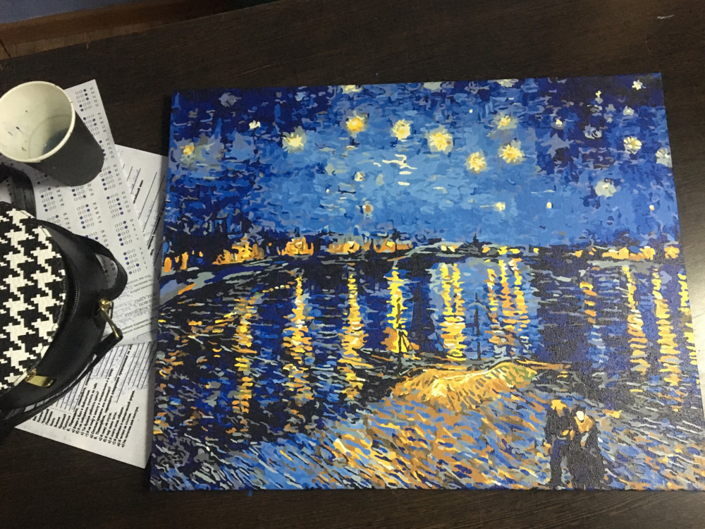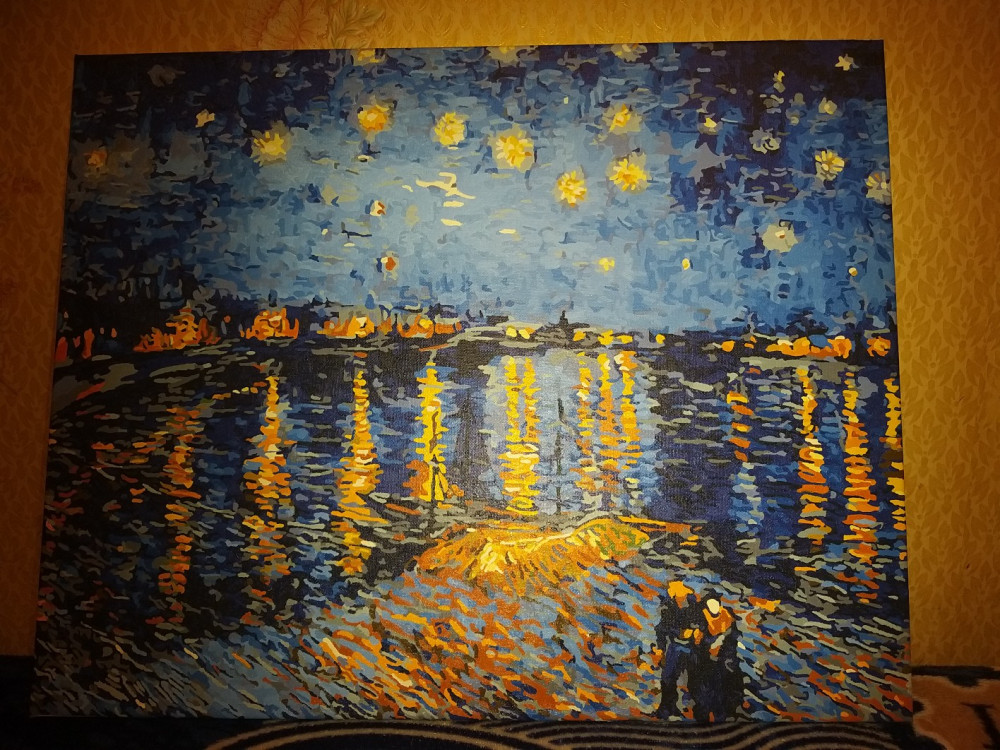 Очень сложная картина, тем более что это был мой первый опыт с картинами по номерам. Но увидев, не устояла и сразу же заказала,так как обожаю творчество Ван Гога. Красила почти два месяца, хотя рассчитывала закончить за пару вечеров, наивная)) Но получилось шикарно. Спасибо магазину Flip.