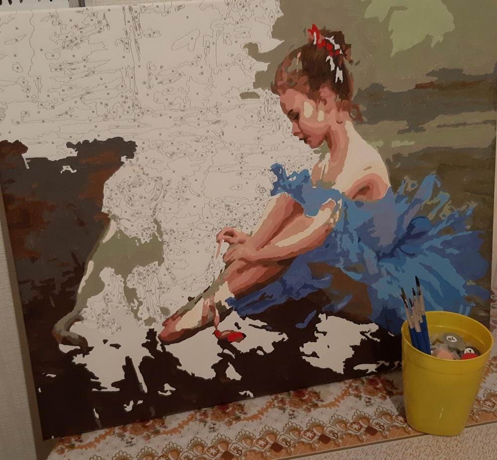 Картина даже близко не напоминает того, что на картинке, очень жаль. Краски быстро засыхают в баночках, стали вязкие.