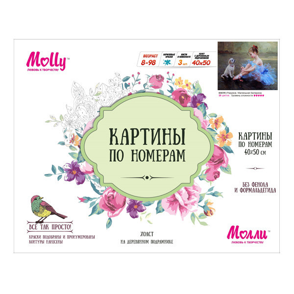 Molly Набор для раскрашивания по номерам на холсте «К. Разумов. Маленькая балерина» (40×50 см)В данный момент этот товар отсутствует в продаже. Возможно, у нас найдется аналогичный или похожий товар здесь. Серия: Картины по номерам на холсте Используя кисти и краски, можно нарисовать картину Константина Разумова «Маленькая балерина». На картине изображена юная балерина в голубом платье с яркой лентой в волосах. Балетный класс закончился, самое время снять пуанты и поиграть с любимым щенком. |