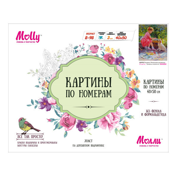 Molly Набор для раскрашивания по номерам на холсте «К. Разумов. Маленькая художница» (40×50 см)В данный момент этот товар отсутствует в продаже. Возможно, у нас найдется аналогичный или похожий товар здесь. Серия: Картины по номерам на холсте С помощью набора для творчества можно нарисовать картину Константина Разумова «Маленькая художница». Рисование способно надолго увлечь даже самого подвижного ребенка. Вот и юная художница в ярком платье, взяв в руки кисть, создала уже не один рисунок. Рядом с девочкой сидит любимый щенок и внимательно наблюдает за хозяйкой. |