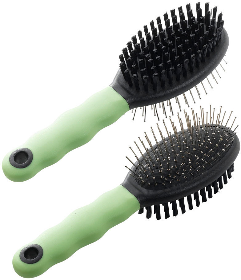 Для отличного состояния шерсти вашего питомца разработана двусторонняя щетка GRO 5798, с одной стороны с закругленными металлическими зубьями для защиты от повреждений кожи, с другой — с мягкой щетиной для придания блеска шерсти. Подходит для кошек с короткой, средней и длинной шерстью.