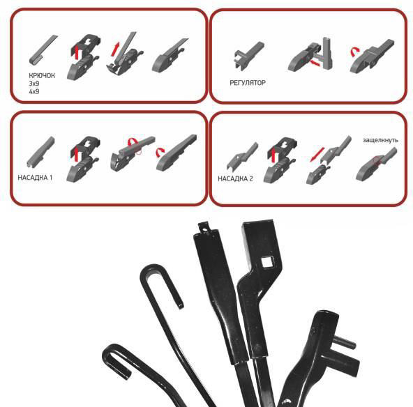 • подведите дворник так, чтобы крюк упёрся в верхний край крепления;