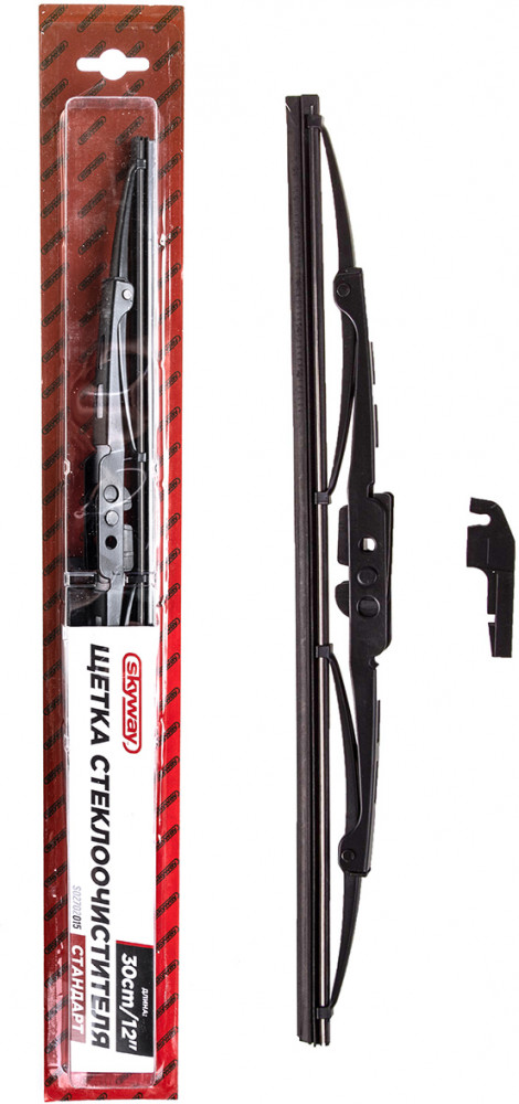 Щетка стеклоочистителя каркасная Skyway стандарт — каркасная щетка равномерно очищает всю поверхность стекла. Щетка работает при низких и высоких температурах (от −20 до +60C). Резинка с графитовым напылением работает мягко и не портит стекло. Щетки стеклоочистителя Skyway стандарт отличаются достойным качетвом по низкой цене. Упакованы в стильную картонную упаковку, в комплекте универсальный адаптер для крепления.