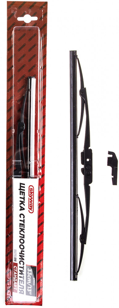 Щетка стеклоочистителя каркасная Skyway стандарт — каркасная щетка равномерно очищает всю поверхность стекла. Щетка работает при низких и высоких температурах (от −20 до +60C). Резинка с графитовым напылением работает мягко и не портит стекло. Щетки стеклоочистителя Skyway стандарт отличаются достойным качетвом по низкой цене. Упакованы в стильную картонную упаковку, в комплекте универсальный адаптер для крепления.