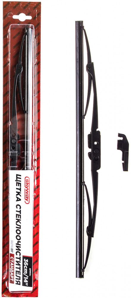 Щетка стеклоочистителя каркасная Skyway стандарт — каркасная щетка равномерно очищает всю поверхность стекла. Щетка работает при низких и высоких температурах (от −20 до +60C). Резинка с графитовым напылением работает мягко и не портит стекло. Щетки стеклоочистителя Skyway стандарт отличаются достойным качетвом по низкой цене. Упакованы в стильную картонную упаковку, в комплекте универсальный адаптер для крепления.
