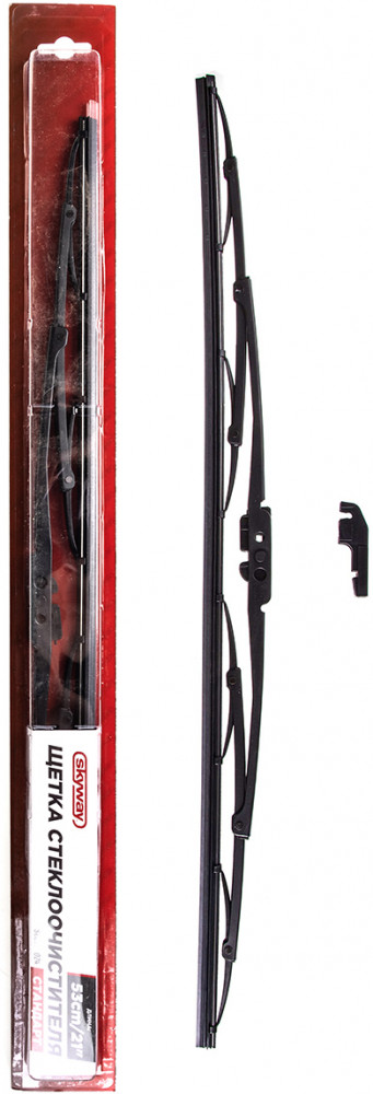 Щетка стеклоочистителя каркасная Skyway стандарт — каркасная щетка равномерно очищает всю поверхность стекла. Щетка работает при низких и высоких температурах (от −20 до +60C). Резинка с графитовым напылением работает мягко и не портит стекло. Щетки стеклоочистителя Skyway стандарт отличаются достойным качетвом по низкой цене. Упакованы в стильную картонную упаковку, в комплекте универсальный адаптер для крепления.