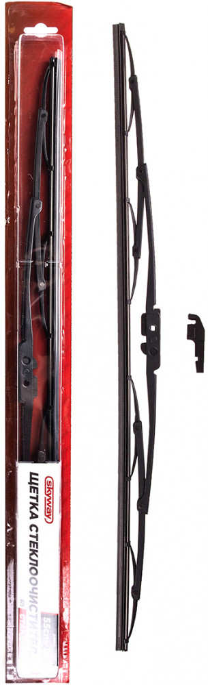 Щетка стеклоочистителя каркасная Skyway стандарт — каркасная щетка равномерно очищает всю поверхность стекла. Щетка работает при низких и высоких температурах (от −20 до +60C). Резинка с графитовым напылением работает мягко и не портит стекло. Щетки стеклоочистителя Skyway стандарт отличаются достойным качетвом по низкой цене. Упакованы в стильную картонную упаковку, в комплекте универсальный адаптер для крепления.