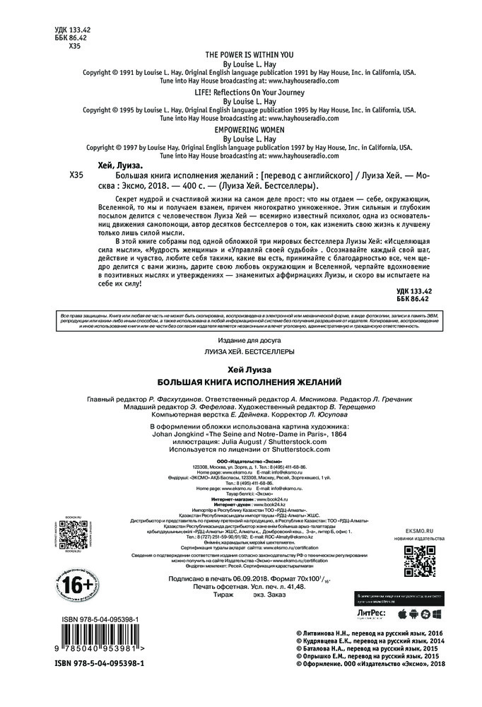 Книгу я заказывала. Она очень большая, необычный дизайн обложки. Я думаю, что любителям Луизы Хай будет вдвойне приятно увидеть в таком оформлении!👍😄 очееень интересно, нравиться, моральна успокоить