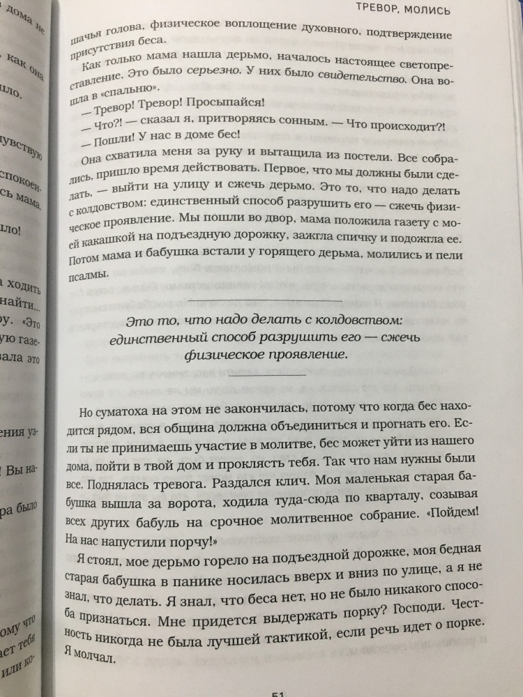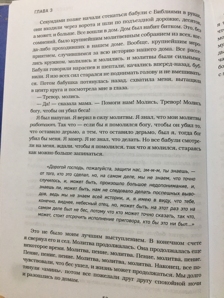 Тревор Ноа рассказывает об ужасах апартеида так легко, что в какой-то момент ты даже забываешь, насколько это кошмарная концепция и, что еще меньше полувека назад связь его родителей - мать коса и отец швейцарец - была незаконной. Поэтому читать нужно всем, чтобы не забывать. И чтобы иметь возможность на некоторые процессы посмотреть с совершенно новой точки зрения. И еще: если не смотрели его спешиалы на Netflix, то это отличный выбор для домашнего вечера. Особенно Son of Patricia.