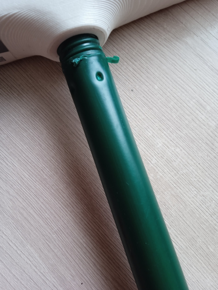 Рукоятка действительно крепкая, чувствуется, в части резьбы немного коническая форма, не прямая, а я купила насадка для швабры «Юбочка», у нее резьба цилиндрическая, при мытье пола, выкручивается, надо другую рукоятку купить