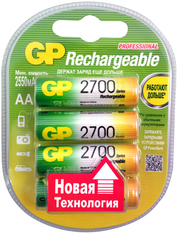 Никель — металлгидридные аккумуляторы GP Batteries обладают максимальной емкостью и плотностью энергии, более чем в два раза превышающей уровень никель-кадмиевых аккумуляторов. Они прекрасно работают в современных цифровых устройствах с большими токами потребления, таких как цифровые фотоаппараты, миникомпьютеры, плееры, детские игрушки и т.п. Продолжительный ток разряда до 3С (три значения емкости). Температура окружающей среды при разряде аккумуляторов от −20 до +50 С. Аккумуляторы могут быть заряжены менее, чем за 1 час. В зависимости от условий эксплуатации срок службы аккумуляторов составляет 500-1000 циклов заряд-разряд. Аккумуляторы способны длительное время (до 6 месяцев) выдерживать заряд током 0,1С.